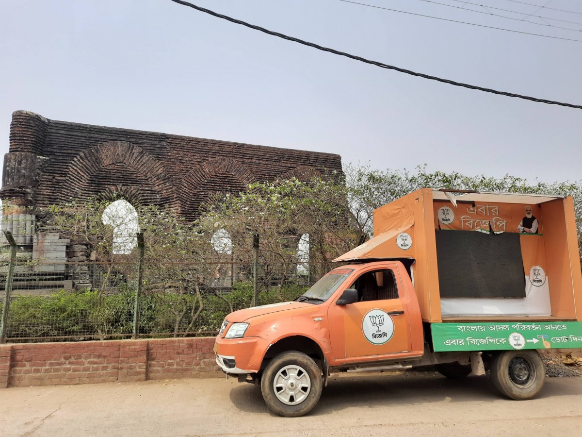 “This masjid you have come to see used to be a Hindu temple of Lord Adinath,” said Rajib Singha, one of Chandan’s neighbours and relatives. A few yards away, near the entrance of the mosque, a Bharatiya Janata Party (BJP) campaign van was loudly playing electoral songs. Tapping his feet to the tune, Rajib said, “If the BJP wins Bengal, just like Ram Mandir, we will recover this temple, too!”