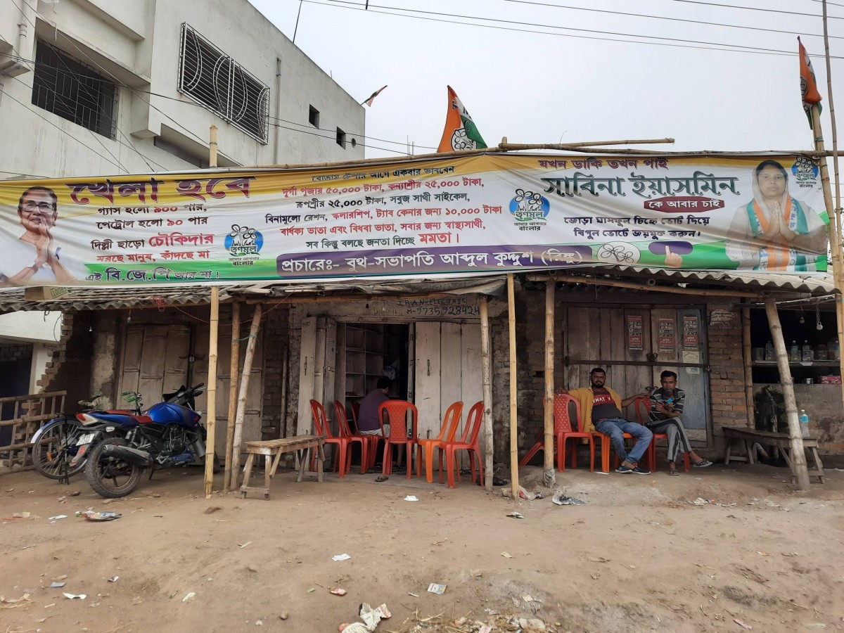 A TMC election office in Mothabari, where the sitting Congress MLA, Sabina Yasmin, is contesting on a TMC ticket.