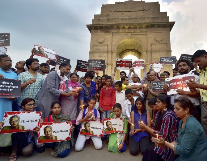 Those of us who regularly receive death threats online and offline by BJP and RSS supporters know that these threats are unlikely to be carried out. Lankesh's killing is meant as a message to each of us: “We haven’t got you yet. But be warned – we could, if we chose.” And the online haters (several of whom are followed by the prime minister) just make sure we get that message. Lankesh herself had received the message loud and clear – she spoke about death threats to intellectuals and activists becoming a regular thing in Karnataka. She – like so many others in Karnataka – refused to be terrorised or silenced by such a climate of threats and intimidation. Lankesh's killing is meant as a warning to all the others that while each death threat might not be followed up with action, the threats are anything but idle.