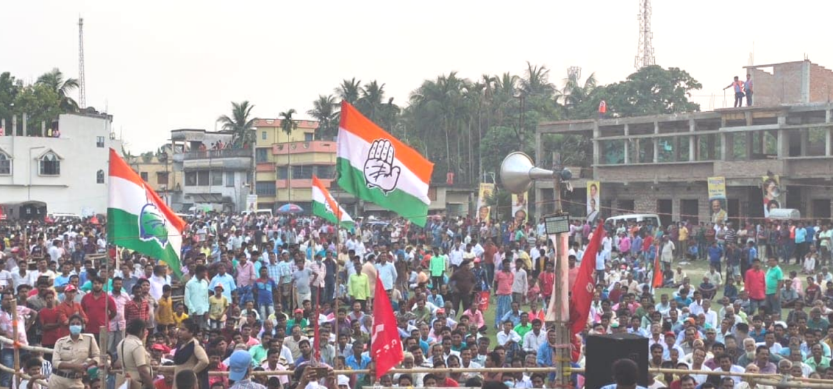 At a Congress rally in West Bengal. Congress is part of the Sankyut Morcha alliance. Photo: Facebook.