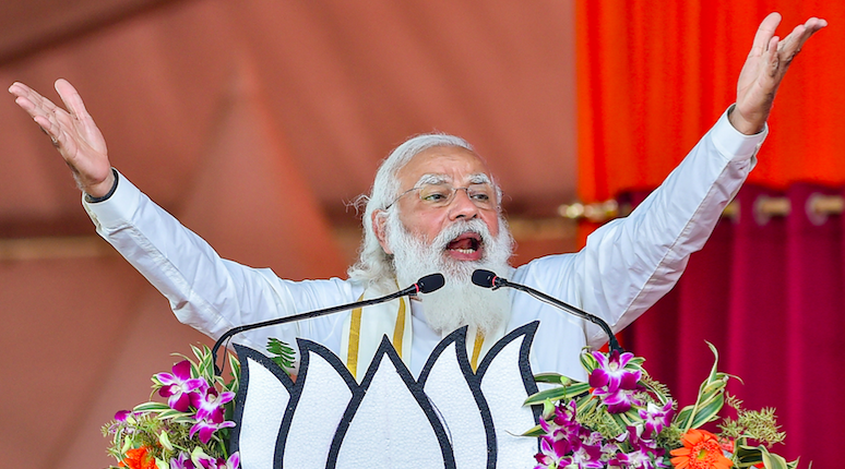 PM Narendra Modi at a rally in West Bengal. Photo: PTI