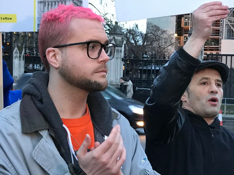 At his first public appearance after the data analyst implicated his former employer in manipulating elections, Wylie joined Fair Vote UK campaigners at Parliament Square in London on Thursday evening to protest Brexit and demand a new referendum.