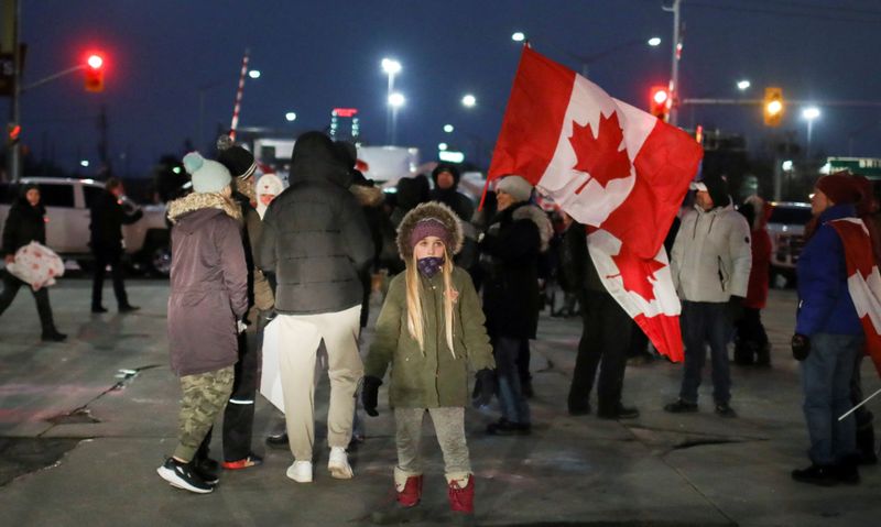 The truckers’ protest has spread across Canada and into many cities – Quebec City, Toronto, Edmonton – and the protesters have successfully blocked two main land crossings to the US – the Ambassador Bridge in southern Ontario and Coutts in southern Alberta.