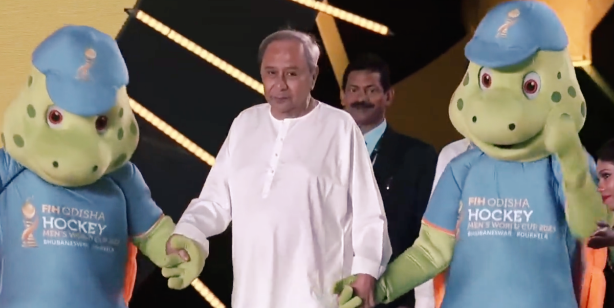 Naveen Patnaik during the opening ceremony of the 2023 Hockey Men's World Cup. Photo: Screengrab via YouTube