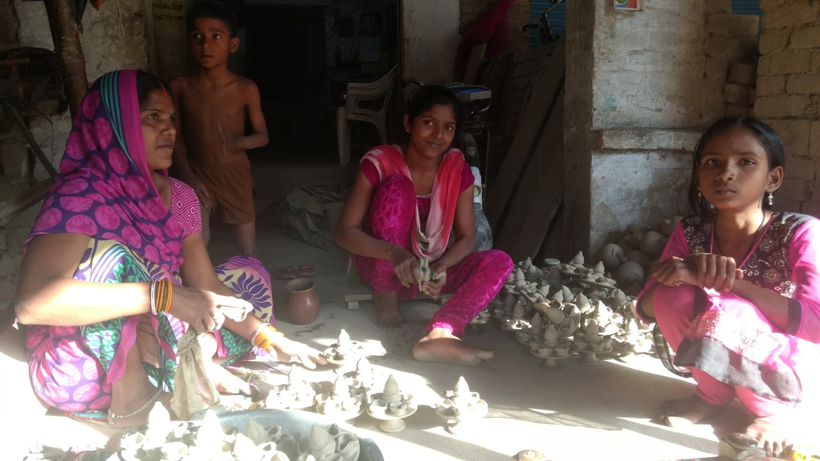 Shakuntala Prajapati, a clay idol maker complains that she has to work till 2 am often. It is back-breaking work, and she manages the sculpting and the painting. She is largely insulated from the more public aspects of the trade, with her husband managing the orders and finances. She has a daughter who dropped out of school and helps her with the idols. Sumeri Devi belongs to a family that makes black-clay pottery. Her husband works on the wheel and she polishes and dries the products with the help of her children. Her children don’t have access to education because they are engaged in the trade. She herself could not answer any questions about how the business works, saying, “Hum toh bas yehi karte; unko malum hai. (I only do the work, my husband knows about how it works.)” When asked if she will cast her vote for the assembly polls, she said, “Nahi malum (I don’t know).”