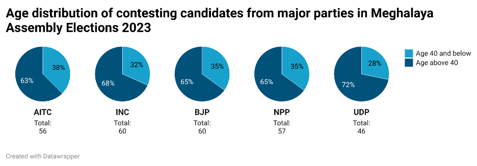 The focus in this cycle seems to be on young candidates, with all parties boasting about the number of young candidates they have nominated. The current chief minister, Conrad Sangma, was appointed to the post at the tender age of 40 in 2018, making him, after Pema Khandu of Arunachal Pradesh, the second youngest chief minister in India.