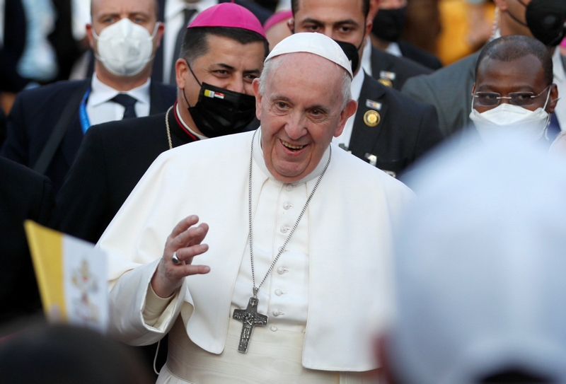 The pope, whose visit to Iraq began on Friday, travels on Sunday north to Mosul, a former Islamic State stronghold, where churches and other buildings still bear the scars of conflict.