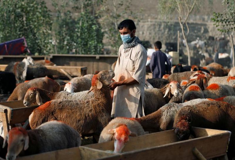 A man waits to sell a cow to customers at a cattle market ahead of Eid-ul-Adha. Credit: Reuters