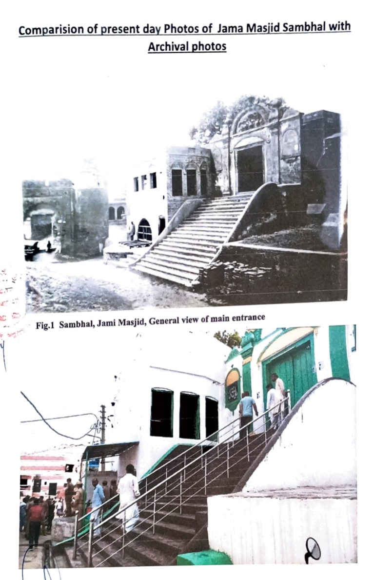 Comparisons of present-day photos of Jama Masjid, Sambhal with archival photos. Source: ASI Report