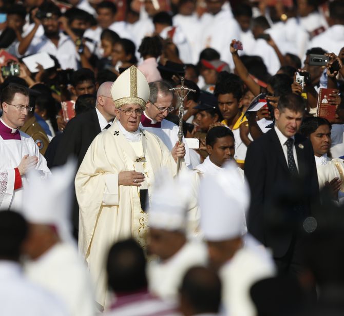 Pope Francis arrives to lead mass in Colombo, January 14, 2015. Credit: Reuters/Dinuka Liyanawatte