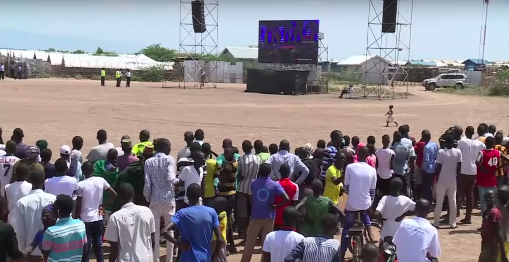 Refugees in Kakuma refugee camp watching TedxKakuma live. Credit: Youtube screenshot