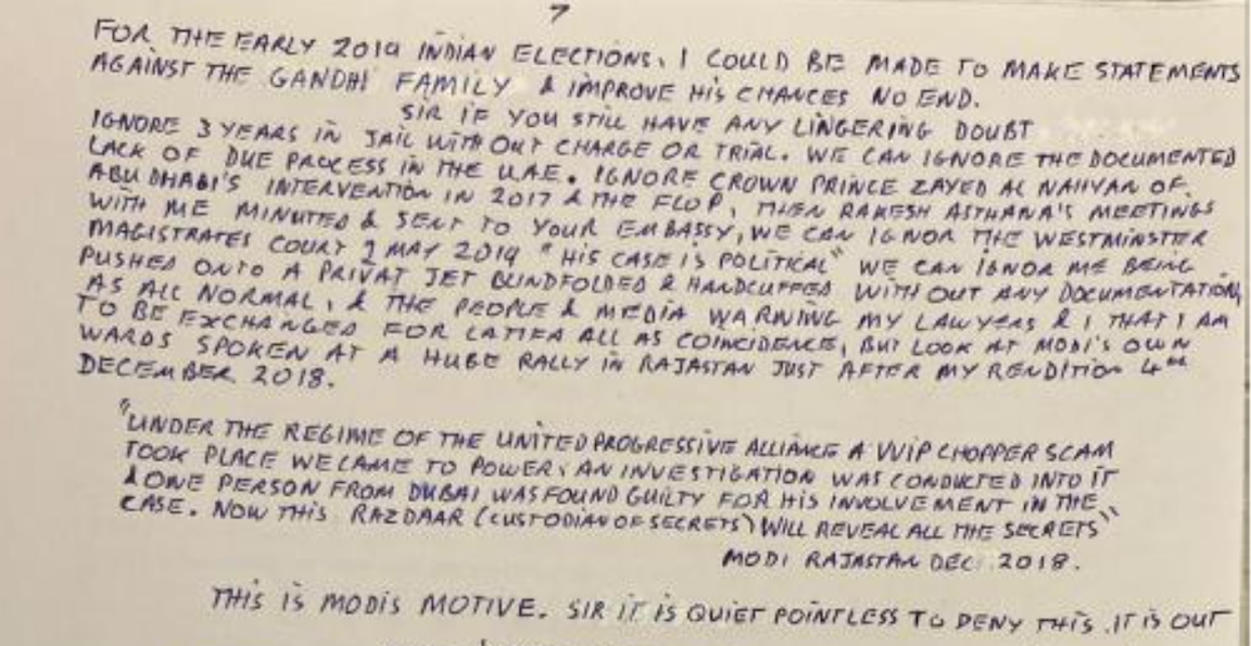 As such, Michel wrote, “Modi thought after his failure to extradite me in 2017 (that) if he could rendition me to India in 2018 in exchange for Latifa in time for the early 2019 Indian elections, I could be made to make statements against the Gandhi family and improve his chances no end.”