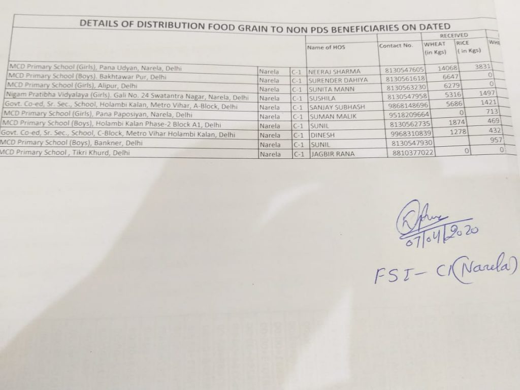 However, an Aam Aadmi Party volunteer group has a document dated April 7 signed by an official from the same circle that show details of food distribution in the Narela area on that day.