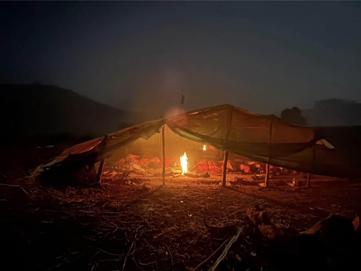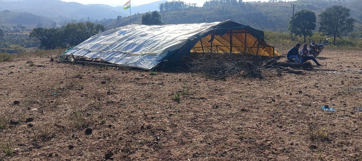 A makeshift tent of watchdogs at the Sijimali hill entrance point near Sagabari village. Photo: Ganesh Gaigouria