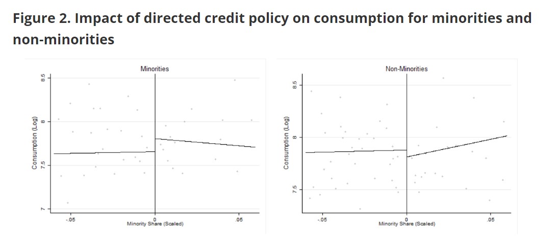 - For instance, it is possible that banks had private information on the quality of minority borrowers and were unwilling to lend to them previously, as such borrowers had limited repayment capabilities. In such a situation, a directed credit programme designed by policymakers would be sub-optimal, and it might be worthwhile to offer asset transfer programmes to first raise income flows of minority borrowers.