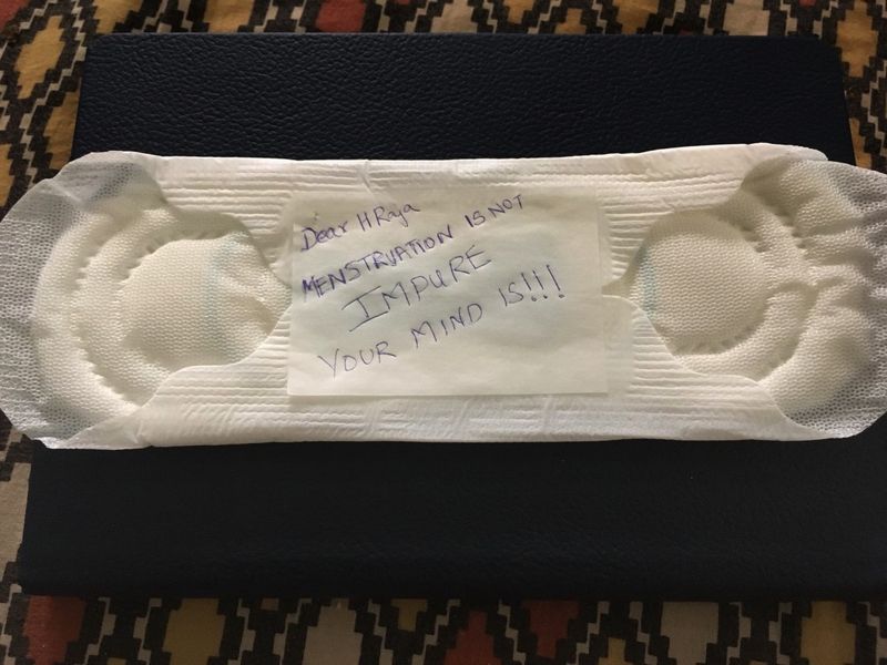 Initially, our idea was to courier a packet of sanitary napkins to Raja's office with transparent packaging and with the message: 'No it is not scary, it is natural, it doesn’t bite". But considering the shortage of sanitary napkins with the current flooding scenario in Kodagu and Kerala, we decided to make it an online campaign instead. The support we have received so far shows that we are ready to talk, and that we will continue to talk.