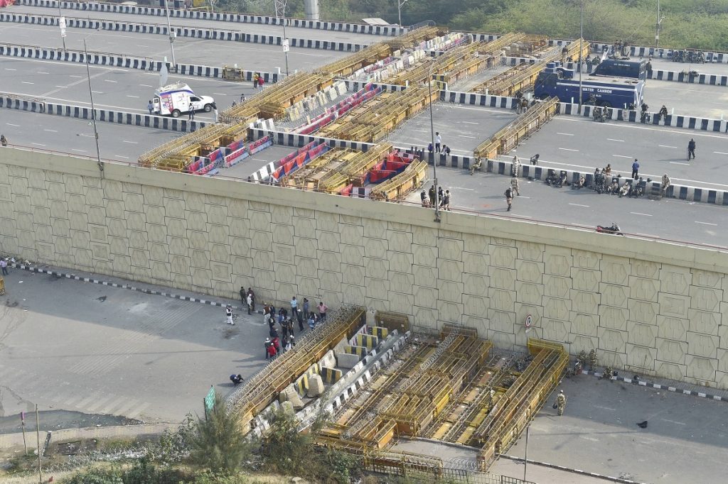 Barricades set up at the Delhi-UP Ghazipur border to stop farmers from marching towards the national capital in New Delhi, February 2, 2021. Photo: PTI/Vijay Verma