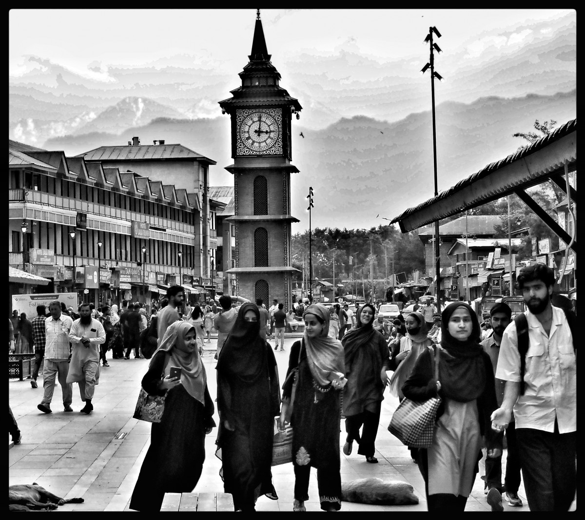 Tourists and locals at the Lal Chowk.