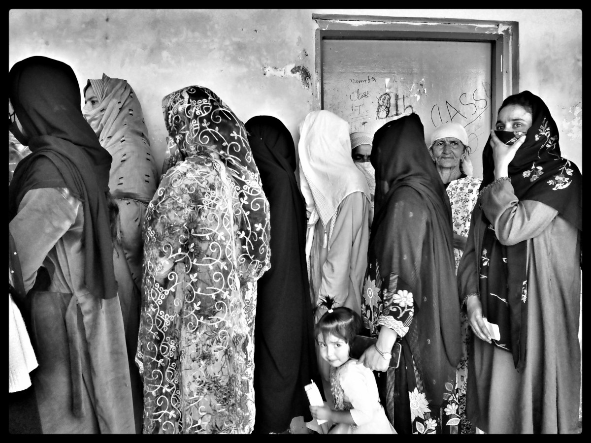 Long queue on the voting day in Baramulla as Kashmiris come out to elect their representative.