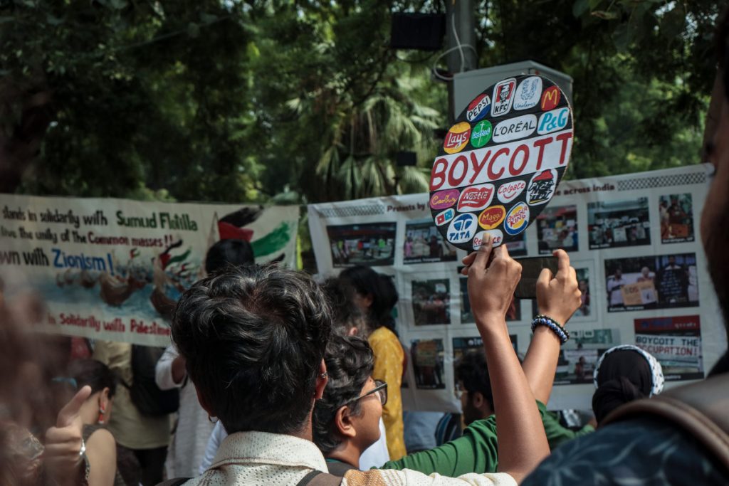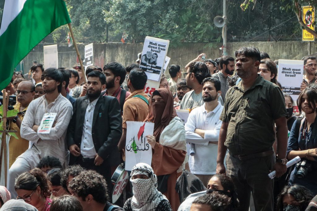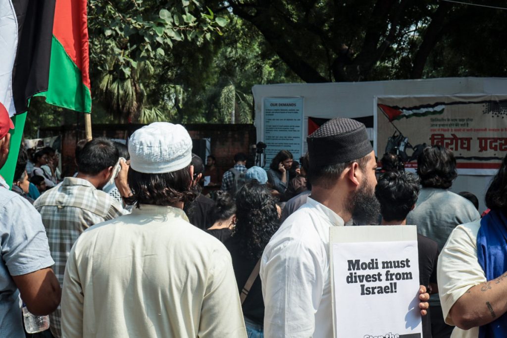 The protesters called for a complete diplomatic, academic, commercial, and cultural boycott of Israel in India. They demanded that the Indian state cut all diplomatic ties with Israel, ban Israeli products and companies complicit in the occupation, and stop engaging with Israeli writers, artists, and academicians. They also urged the state to ensure that Indian companies divest from Israel, and to sanction the Israeli state for what they described as a cold-blooded genocide.