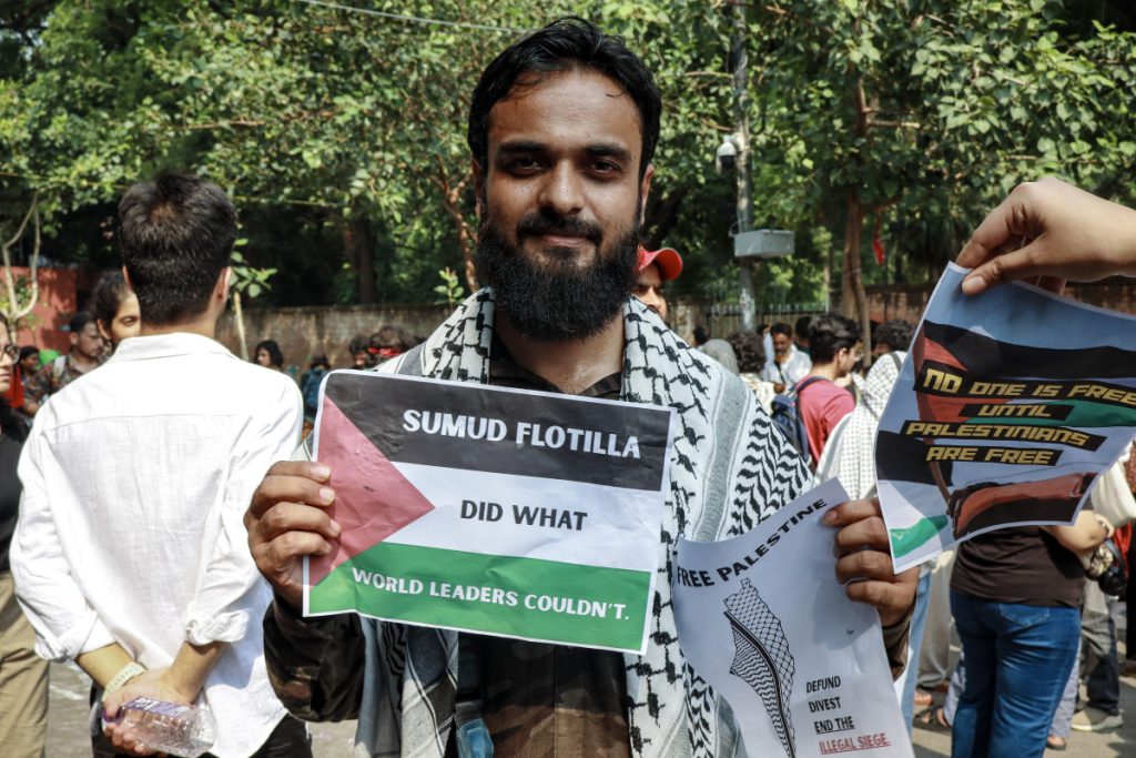 They held flags and placards that read “Free Palestine” and “End the Siege of Gaza.” The protest, organised by BDS India and the Indian People in Solidarity with Palestine (IPSP), was part of a nationwide movement against Israel’s ongoing genocide in Gaza and the illegal arrest of activists from the Global Sumud Flotilla, many of whom remain imprisoned in Israel.