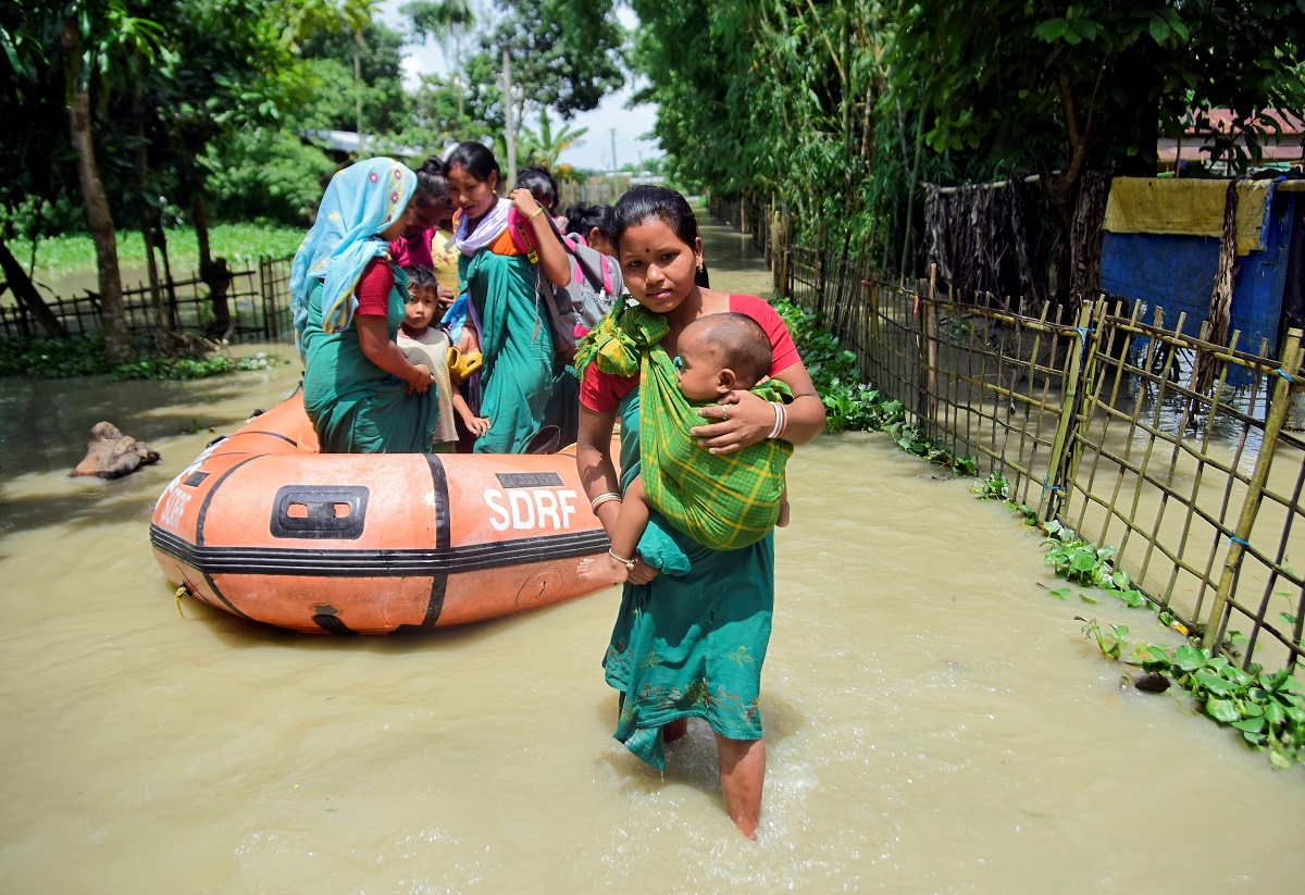 Flood-affected people arrive at a relief camp after they were evacuated from a flooded area at a village in Barpeta district of the northeastern state of Assam, India, July 25, 2019. Photo: Reuters/Anuwar Hazarika.