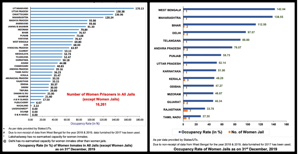 L: The state-wise occupancy rate of women’s enclosures within larger men’s prisons.