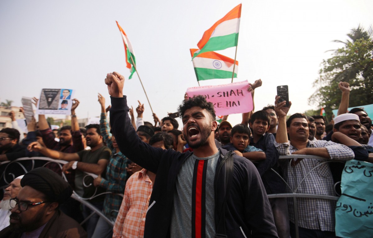 Demonstrators hold placards and shout slogans during a protest against a new citizenship law in Mumbai, India, December 30, 2019. Photo: Reuters/Francis Mascarenhas