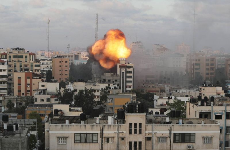 Rescuers carry Suzy Eshkuntana, 6, as they pull her from the rubble of a building at the site of Israeli air strikes, in Gaza City, May 16, 2021. Photo: Reuters/Mohammed Salem
