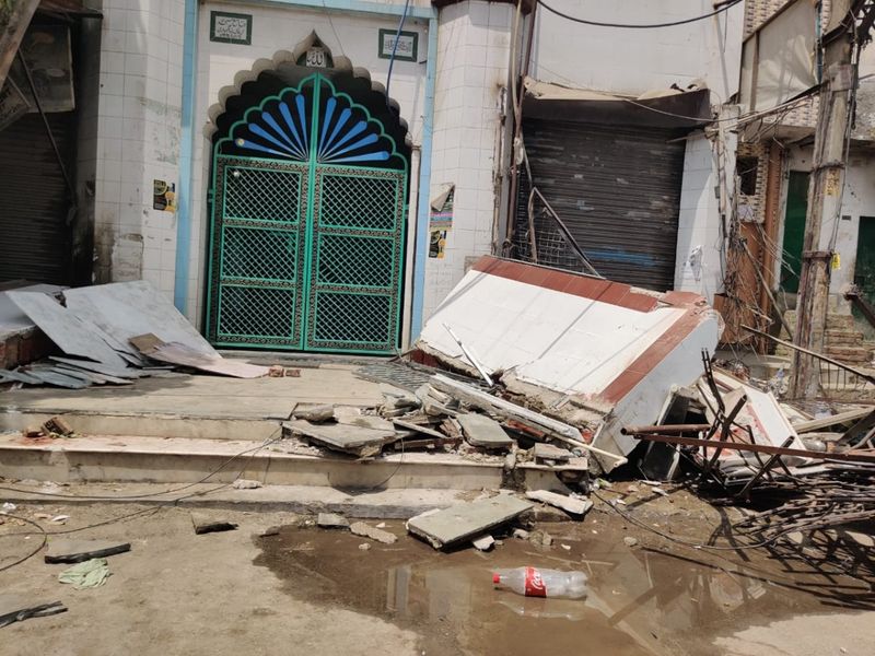 There were also rumours that the mosque in the area had been torn down. While that is not the case, some tiles and a railing on the mosque's external wall were damaged, The Wire confirmed. Shops on both sides of the mosque were torn down.