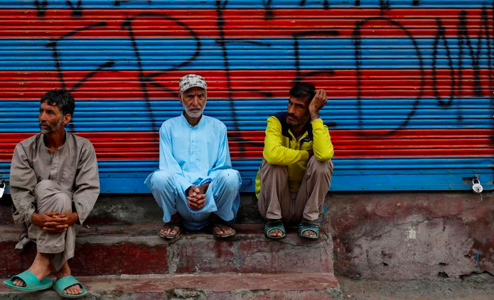 Kashmiri men wait before Eid-al-Adha prayers during restrictions after the scrapping of the special constitutional status for Kashmir by the government, in Srinagar, August 12, 2019. Photo: Reuters/Danish Siddiqui