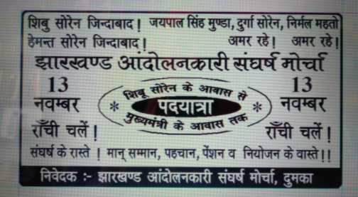 Jharkhand Andolankari Sangharsh Morcha poster calling for a protest on November 13, 2021 on the eve of Jharkhand’s foundation day.