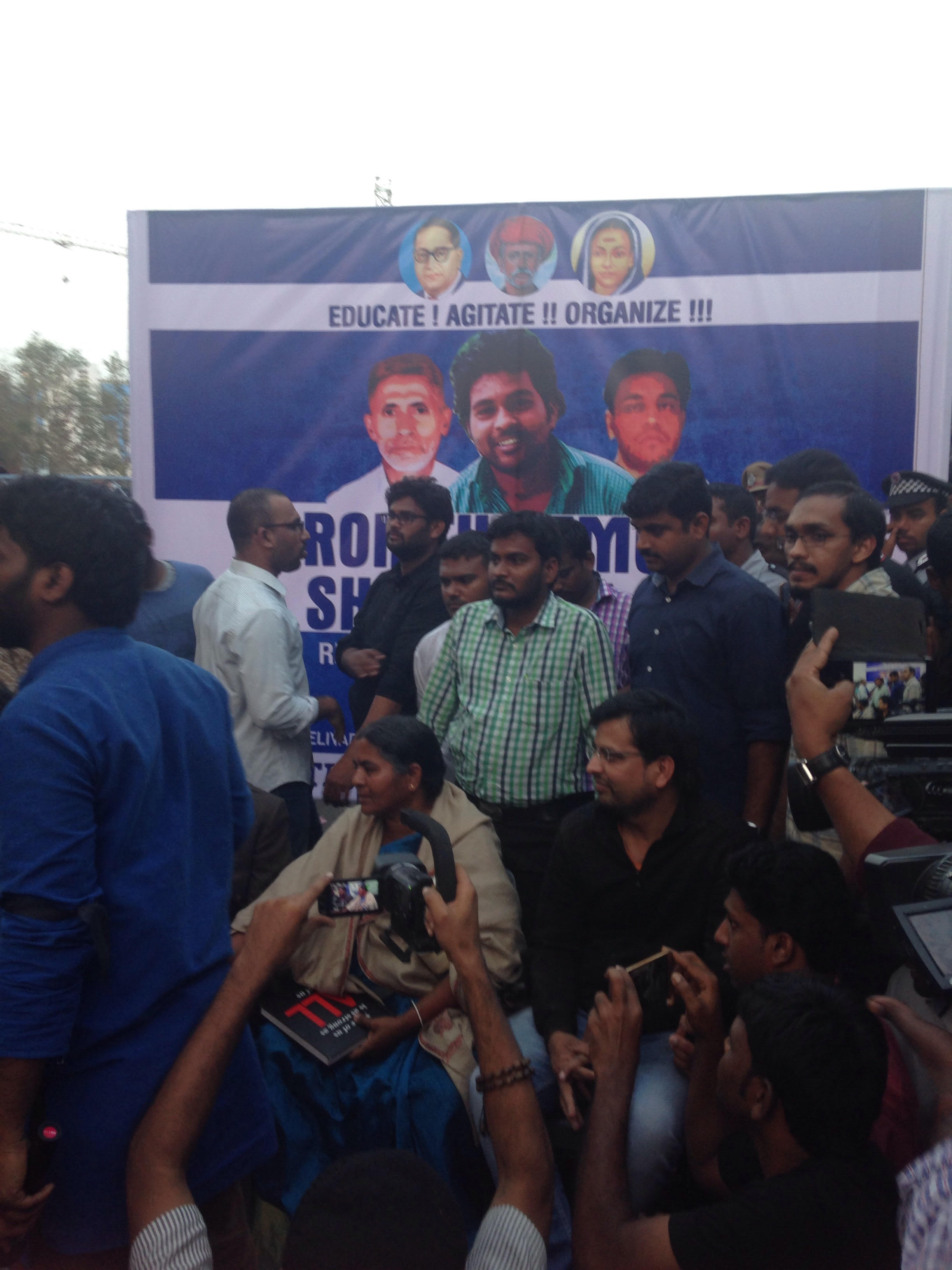 The protest was attended by Naseem Ahmed, brother of missing Jawaharlal Nehru University student Najeeb Ahmed, Dadri victim Mohammad Akhlaq's brother Jaan Mohammad, Rahul Sonpimple, Una attack survivors Jitu, Piyush and Ramesh Sarvaiya and Vemula's brother Raja and mother.