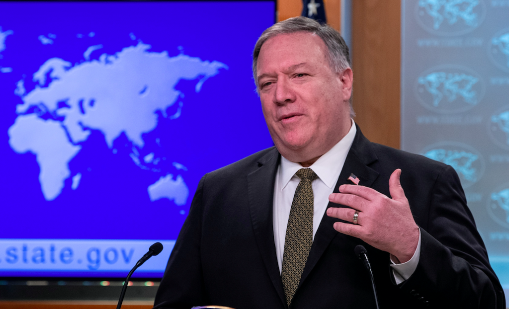 US Secretary of State Mike Pompeo speaks at a press briefing at the State Department in Washington, US, April 22, 2020. Photo: Nicholas Kamm/Pool via Reuters