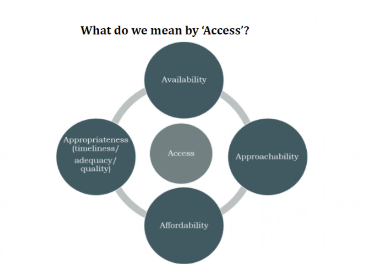 Though “access” in general means a way of approaching, reaching or entering a place, as the right or opportunity to reach, use or visit, it is here broadly conceptualised to encompass the “4As”: affordability, approachability, appropriateness and availability.
