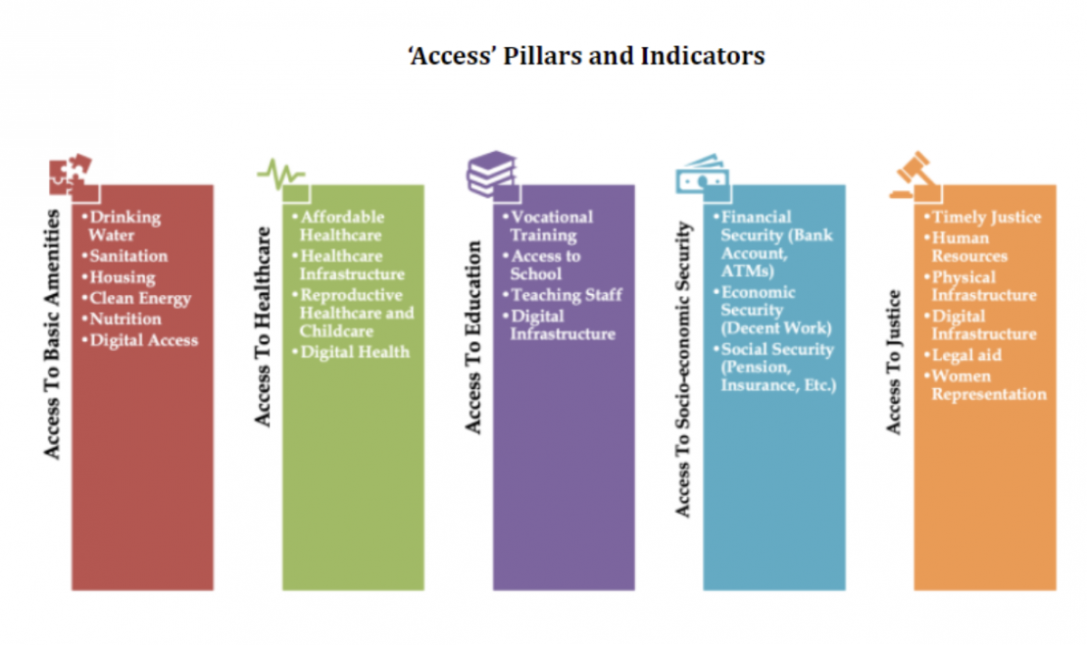Our work has been used to compare observable differences among north Indian and south Indian states, but it also shows how Karnataka performs lower compared to other southern states like Tamil Nadu, Telangana, and Kerala on most ‘access’ pillars.