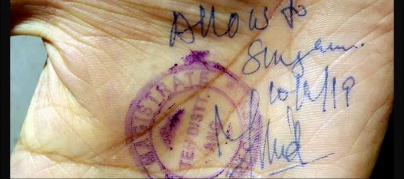 A photo of the man's right hand, which had a stamp, signature and the date on it, along with a handwritten noted saying "allowed to Sangam", soon went viral on social media.