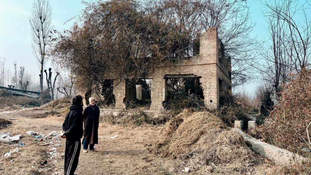 Koul's neighbours in Laribal's Krandigam look at his ancestral home gutted in the 1990s. Photo: Tarushi Aswani