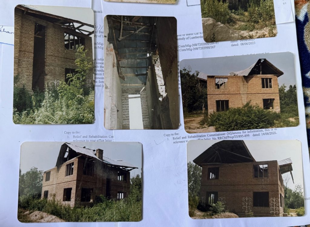 Koul’s complaints about his house in Bijbehara’s Laribal fill another, thicker folder. In the pictures Koul has collected over the years, the story unfolds chronologically: applications to district officials, damage assessment forms, photographs, duplicate affidavits, reminders, and re-reminders.