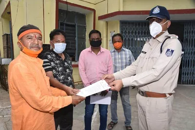RSS activists handing over complaint to Jabalpur police. Photo: Special Arrangement