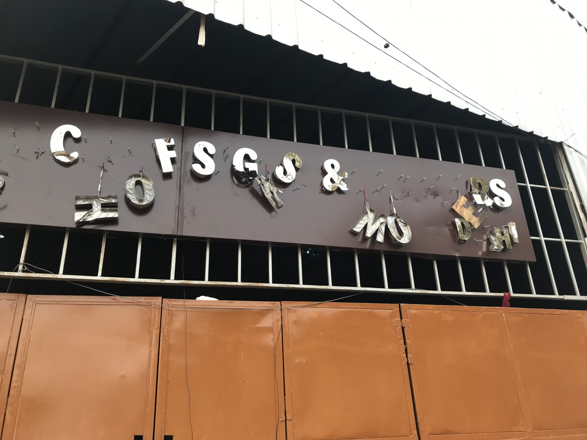 The vandalised church signboard in Dwarka. Photo: Nikita Jain