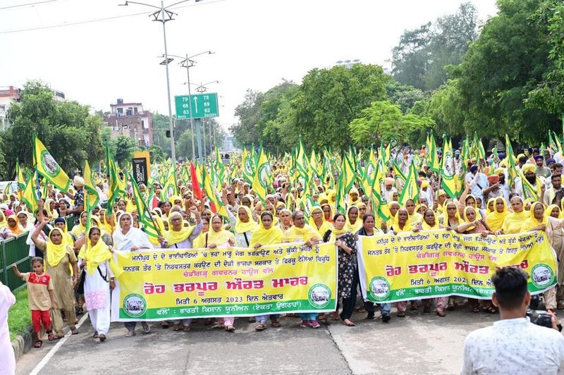 Chandigarh: The continuing violence in Manipur brought together farmers from across 20 districts in Punjab on Sunday, August 6, to stage a protest against the alleged failure of the Narendra Modi government and the Biren Singh government in controlling the violence. The protest was largely led by women.