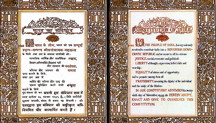 The Preamble to the Indian Constitution. Photo: Wikipedia Commons