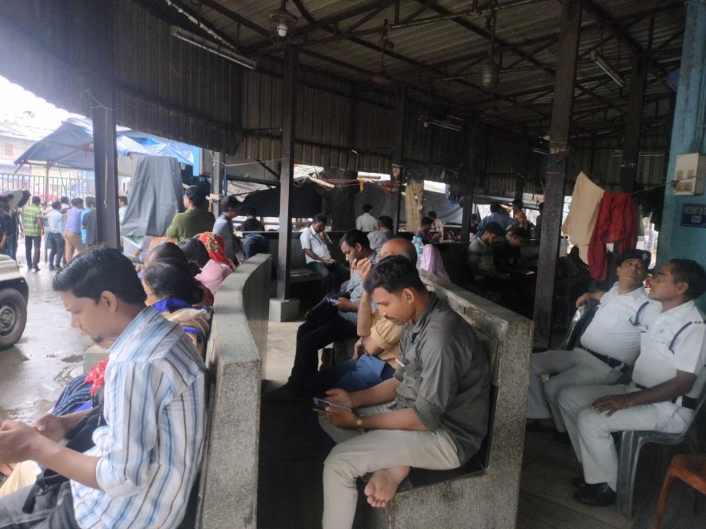 Attendants wait with policemen at R.G. Kar. Photo: Joymala Bagchi/The Wire