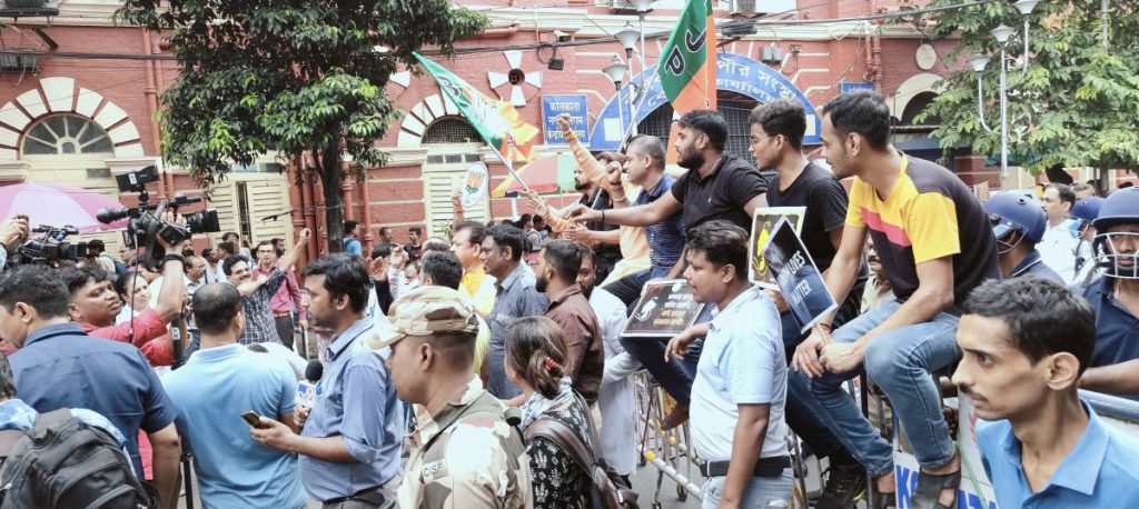 An image from a BJP protest in central Kolkata, posted on X by the party's Bengal wing.