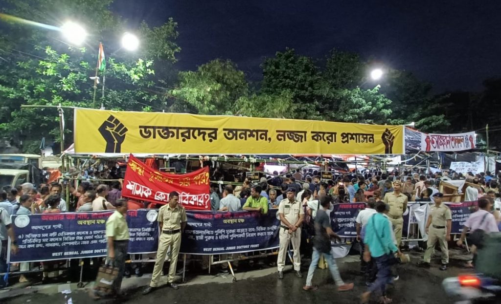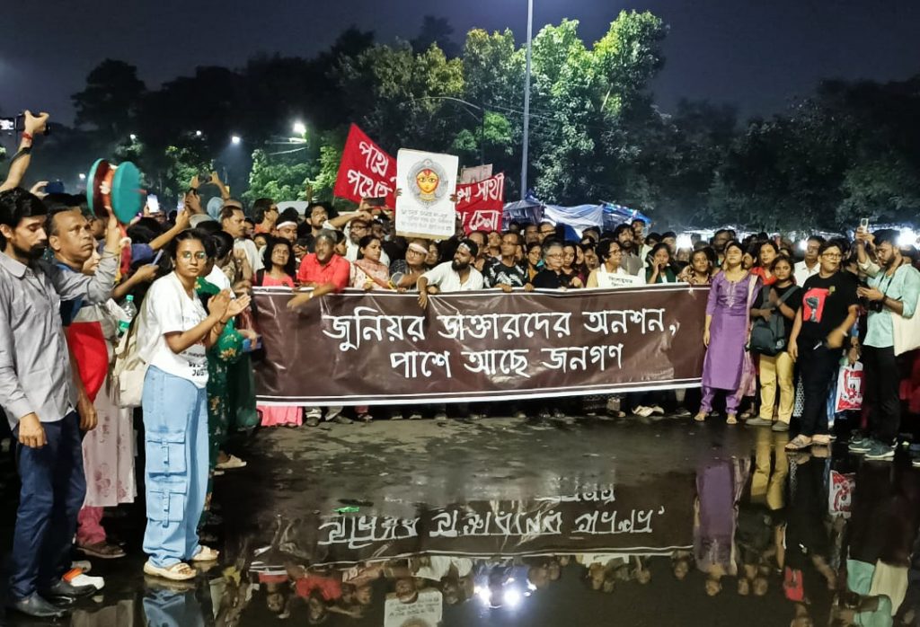 Despite the lack of permission, doctors of Kolkata's P.G. Hospital and Kolkata Medical College joined the Dharmatala protest.
