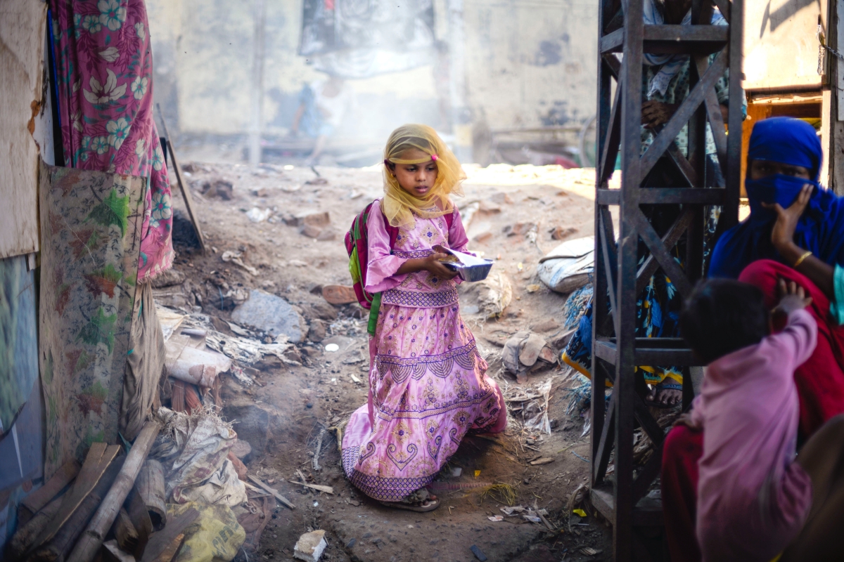 A girl walks inside the Rohinya refugee settlement area in Kalindi Kunj, New Delhi, August 17, 2022. Photo: PTI/Ravi Choudhary