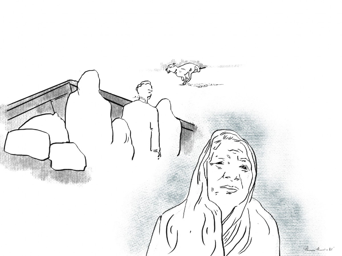 When Bilkis Jaan, 60, fled from her village, Bohmu Para in Maungdaw district, in June 2013, Ghona, her 12-year-old, brown- and black-furred bitch, cried to death.