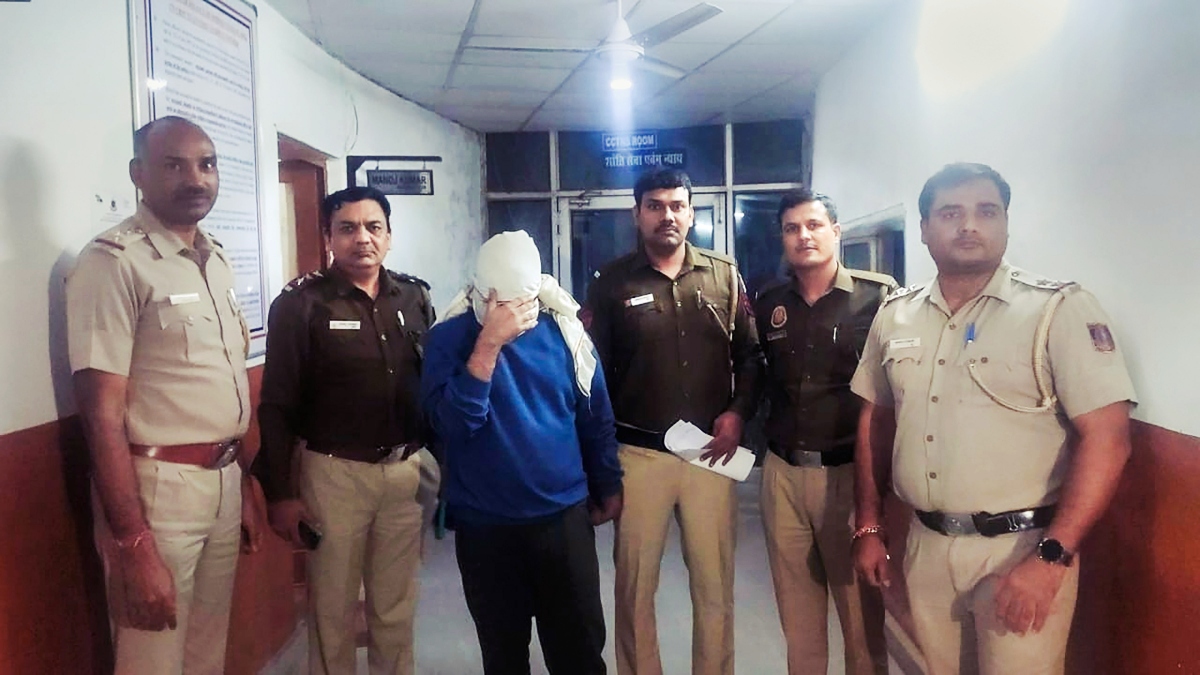 Delhi police officers apprehend Aftab Ameen Poonawala, who is accused of killing his live-in partner Shraddha Walkar, at Mehrauli Police Station, in New Delhi, November 14, 2022. Photo: PTI