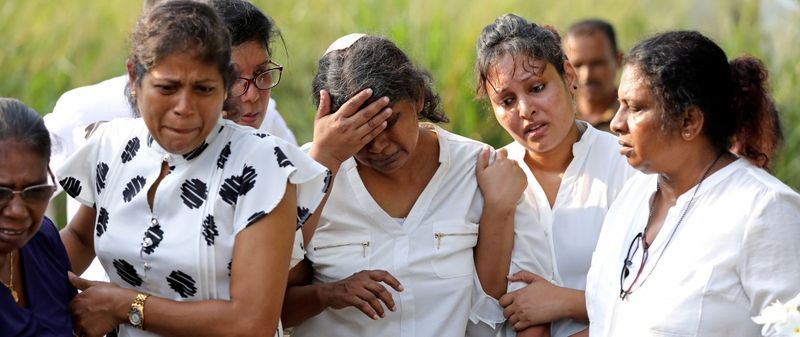 Pallbearers carry the coffin of Sajuni, 23, who died during a string of suicide bomb attacks on churches and luxury hotels on Easter Sunday, at her funeral in Negombo, Sri Lanka April 24, 2019. Credit: Reuters